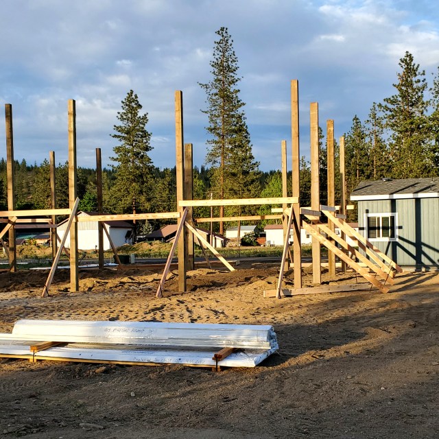 The gray walls in my new home take on varying shades depending on the light. The new wall decorations reflect gray and wood tones. Even our pole barn/garage currently under construction shows varying shades of gray in the evening sunlight!